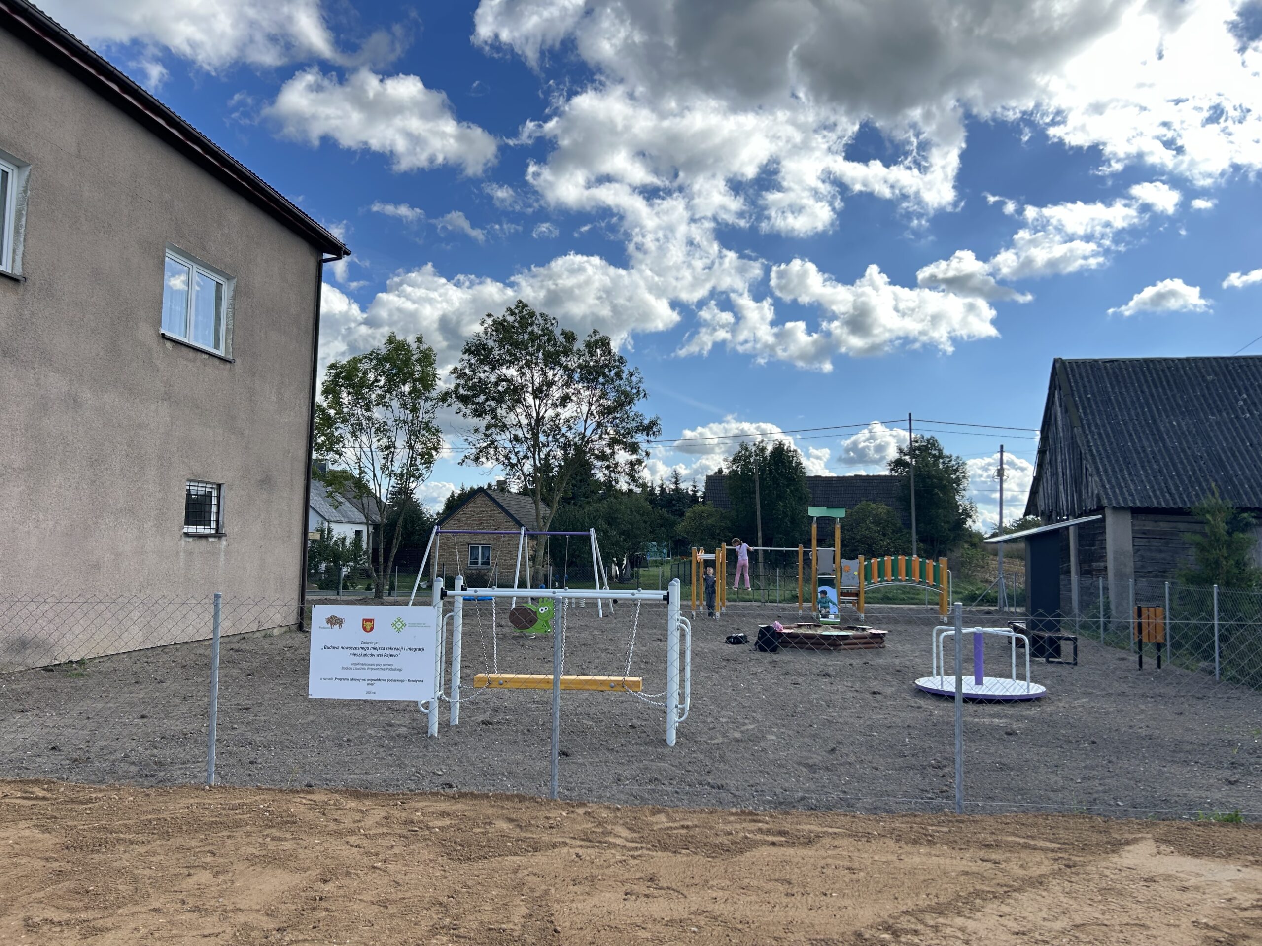 Zadanie polegało na stworzeniu nowoczesnej przestrzeni publicznej służącej rekreacji oraz integracji społecznej mieszkańców wsi Pajewo. Inwestycja miała na celu zapewnienie miejsca do wykonywania aktywności fizycznej, odpoczynku rodziców oraz spędzania wspólnego czasu polegającego na zabawie i integracji z innymi użytkownikami placu. Realizacja zadania stanowiła odpowiedź na potrzeby lokalnej społeczności, która nie posiadała odpowiedniego miejsca do aktywnego wypoczynku i sąsiedzkich spotkań. Brak placu zabaw i infrastruktury towarzyszącej ograniczał możliwości spędzenia wspólnie czasu rodzin z dziećmi.