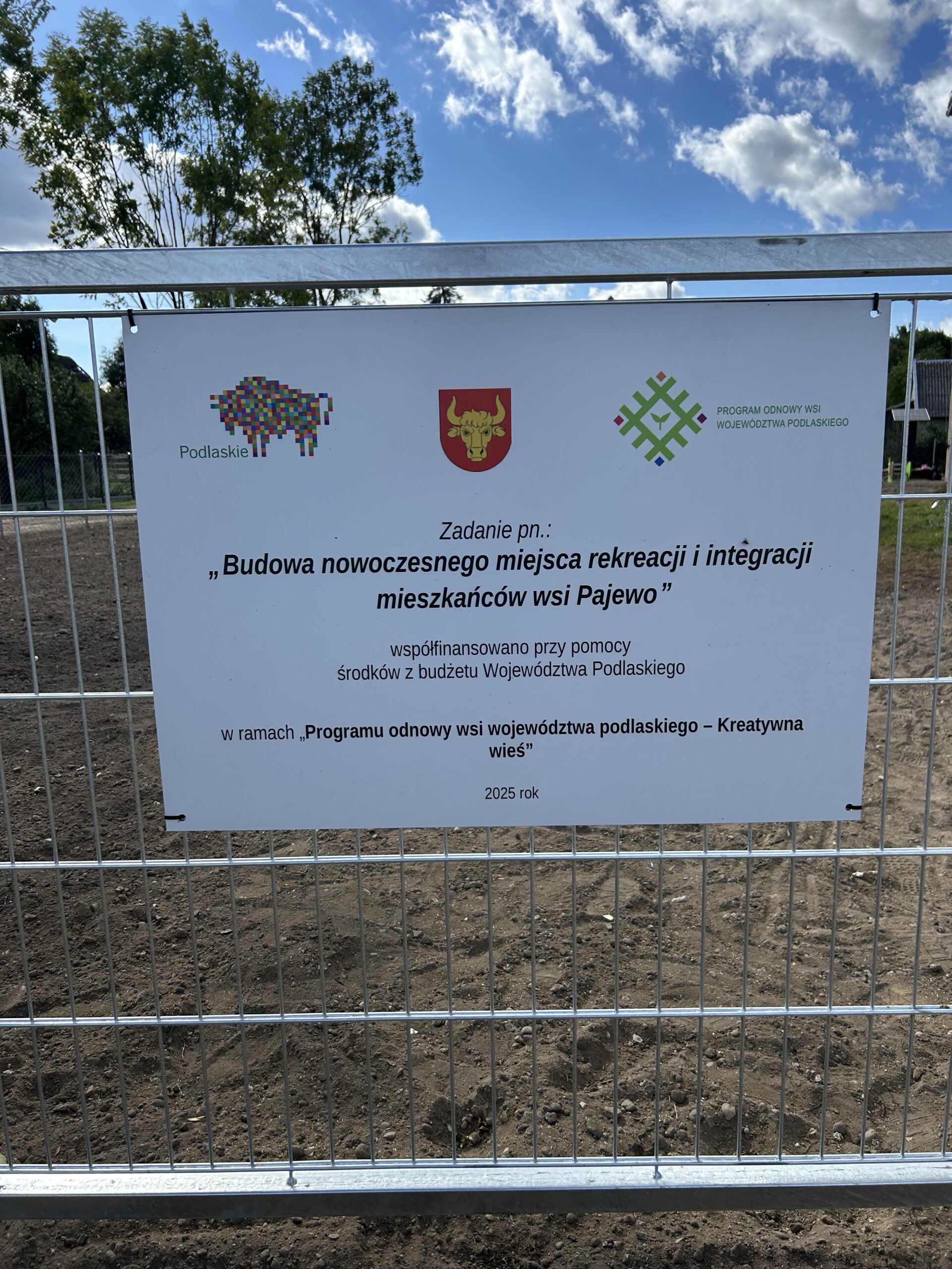 Realizacja zadania pn. „Budowa nowoczesnego miejsca rekreacji i integracji mieszkańców wsi Pajewo” w ramach „Programu odnowy wsi województwa podlaskiego – Kreatywna wieś”.